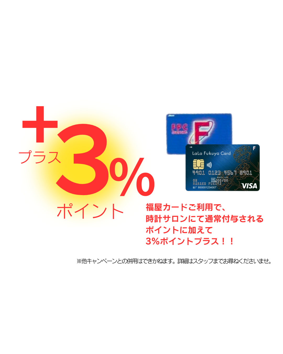 通常ポイントに加えプラス3%の福屋ポイントをさしあげます。